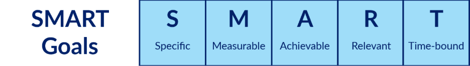 SMART goals stand for Specific, Measurable, Achievable, Relevant, and Time-bound — a framework that establishes clear, identifiable goals. Here is an example of an unclear goal reworked into a SMART Goal.